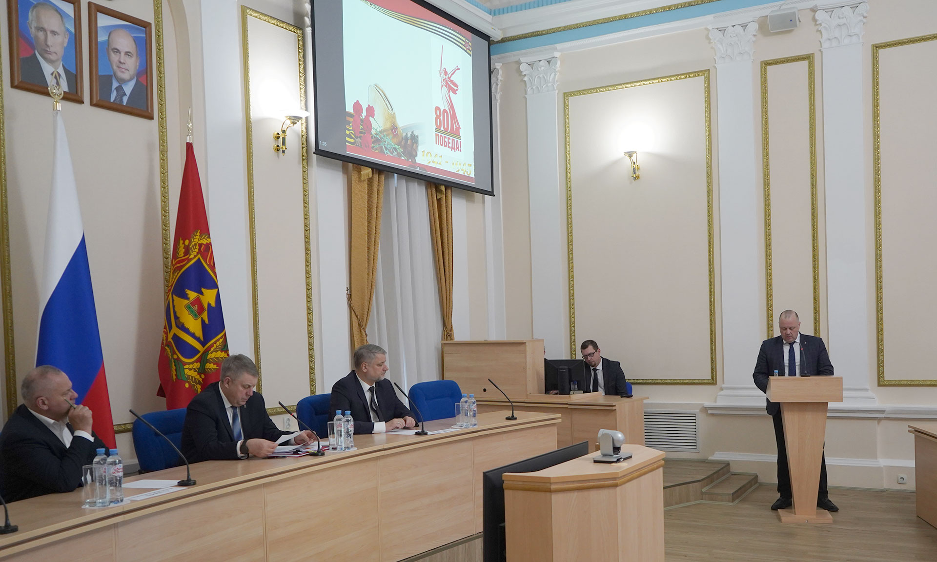 В совещании приняли участие Губернатор Александр Богомаз, председатель Брянской облдумы Валентин Суббот и главный федеральный инспектор по Брянской области Андрей Дьячук. Брянщина готовится к празднованию 80-летия Дня Победы. Во всех районах ведется работа по благоустройству воинских мест захоронения. В регионе таких объектов насчитывается 1900, из них 1016 мемориальных объектов культурного наследия, связанных с событиями Великой Отечественной войны 1941—1945 гг., находящихся под государственной охраной. 884 объекта являются воинскими захоронениями. Реконструкция ряда объектов проходит по программе инициативного бюджетирования. При этом Александр Богомаз подчеркнул: чтобы поддерживать памятники в надлежащем виде, особых финансовых затрат не нужно — главное, участие и внимание к этим объектам, неравнодушное отношение к памяти! Губернатор поручил в кратчайшие сроки завершить работу по благоустройству памятников воинской славы. Фото: пресс-служба Губернатора и Правительства области