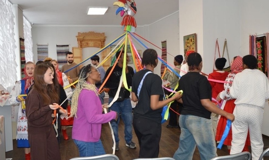 Гостями встречи стали иностранные студенты Брянского государственного технического университета. Народный фольклорный ансамбль «Макоша» Центра «Народное творчество» познакомил собравшихся с основами русского гостеприимства, обязательной традицией которого всегда были хлебосольство и народные песни. Гости совершили экспресс-путешествие по обрядам и праздникам народного календаря – «круглого года», они сыграли в народные игры и с вниманием слушали фольклорные песни. Встреча прошла в доброй атмосфере и во взаимном уважении. Об этом рассказывается в группе ВК Департамент культуры Брянской области. Фото ВК Департамент культуры Брянской области