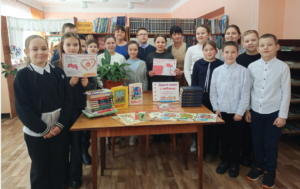 Кульминацией недели книгодарения стал визит коллективных дарителей: учащихся 2 и 4 класса СОШ №1 с классными руководителями Н.В.Бешляго и Н.Б. Батуро. Юные дарители вместе с педагогами подарили яркие, необычные, интересные книги. Для школьников библиотекари провели библиоурок «Подарок мудрости», посвященный празднику дарения книги. Ребята познакомились с историей праздника, узнали, кто его придумал, поучаствовали в литературных конкурсах и викторинах. Из подаренных книг в читальном зале оформлена книжная выставка «Дары читателей: от сердца к сердцу».