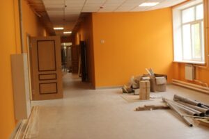 На данный момент второй этаж уже полностью отремонтирован. В классных комнатах частично установлена мебель, вторая часть школьной мебели и оборудования на подходе. Замена и лестница на второй этаж, теперь она будет полностью металлическая. Работы продолжаются на первом этаже- здесь идет обустройство столовой, кабинетов. Стены классов и коридоров отштукатурены и покрашены на чистовую. Параллельно строители занимаются облицовкой фасада металлосайдингом. Подрядчик работает быстро, качественно. Все работы ведутся согласно графика.