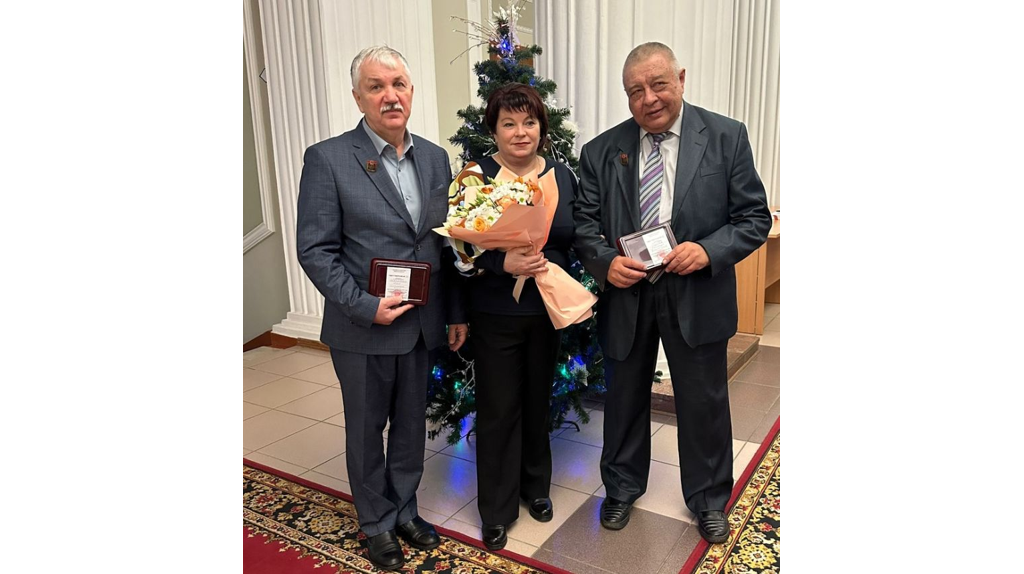 Председатель регионального парламента Валентин Суббот вручил удостоверения и нагрудные знаки «За заслуги в развитии физической культуры и спорта в Брянской области» ветерану шахмат Александру Подымову, директору спортшколы «Вымпел» Наталье Аладинской, заместителю директора по спортивной работе СШОР по борьбе Юрию Нежлукченко. Фото: «Брянская Губерния».